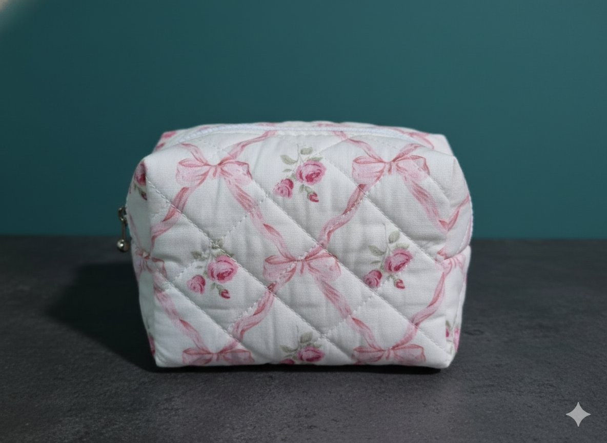 Delicado, romántico y súper práctico, este neceser acolchado es ideal para organizar maquillaje, skincare, bijou, medicamentos o accesorios de uso diario.
