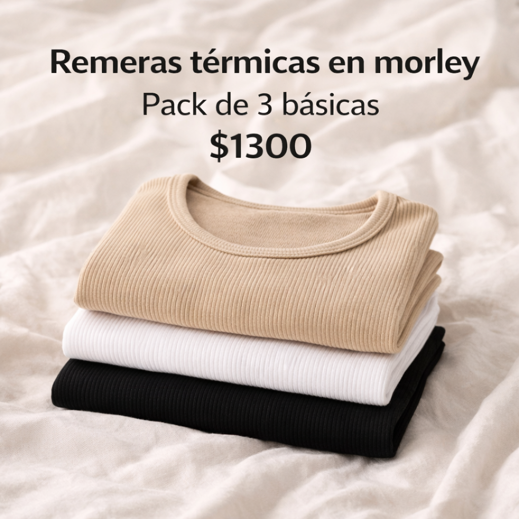 Este pack incluye 3 remeras térmicas en morley, pensadas para acompañarte en el día a día con comodidad, abrigo y estilo.
