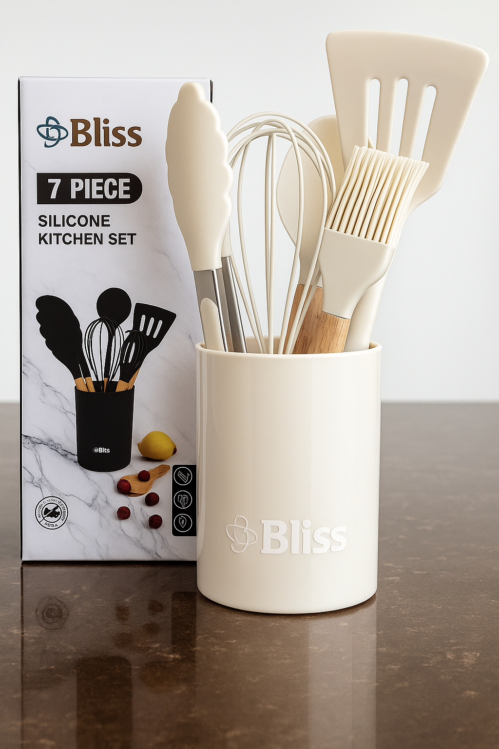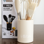 Set de utensilios de cocina de 7 piezas de silicona con mango de madera, ideal para todo tipo de ollas y sartenes, incluso las antiadherentes.